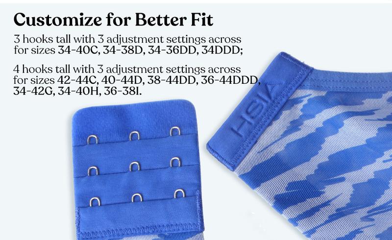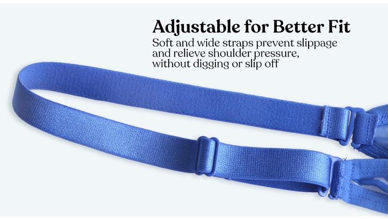 ·Thoughtful Adjustable Straps Design: 2 Types of strap widths for different sizes offer extra support for fuller bust:·15MM: 34C-D, 36C·18MM: 38-44C; 36-44D; 34-42DD; 34-40DDD; 36-38G; 36H·24MM: 44DD; 42-44DDD; 40-44G; 38-42H·Bra Closure Information Our bras are designed with varying hook and eye closures to ensure optimal support and comfort for each size range. Please refer to the following details to find the closure type for your size:·5.5 cm Wide, 3 Rows and 3 Hooks: Available for sizes 34-38D, 34-36DD, 34DDD·7.5 cm Wide, 3 Rows and 4 Hooks: Available for sizes 42C44-46C, 40-46D, 38-46DD, 36-46DDD, 34-44G, 34-42H, 36-40I